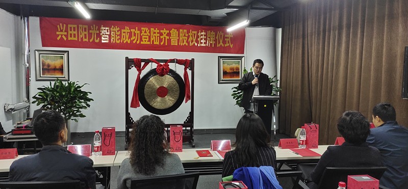 王穎副主任首先致辭,她對興田陽光智能裝備股份有限公司近年來通過規(guī)范公司管理所取得的成績給予充分肯定,并向企業(yè)宣講了濟南市促進資本市場發(fā)展的有關(guān)政策,希望企業(yè)以此次在齊魯股權(quán)交易中心掛牌為契機,再接再厲,充分借助資本市場,將企業(yè)發(fā)展推向一個新的臺階。