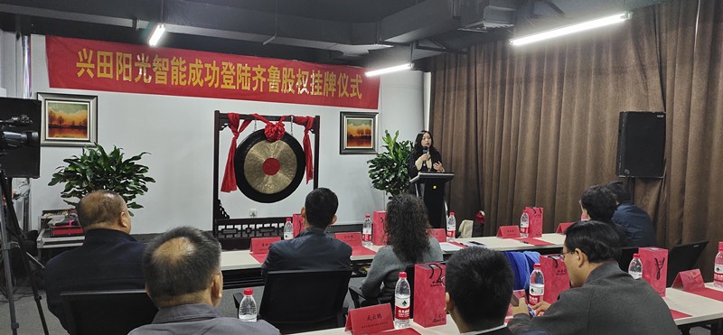 王穎副主任首先致辭,她對興田陽光智能裝備股份有限公司近年來通過規(guī)范公司管理所取得的成績給予充分肯定,并向企業(yè)宣講了濟南市促進資本市場發(fā)展的有關(guān)政策,希望企業(yè)以此次在齊魯股權(quán)交易中心掛牌為契機,再接再厲,充分借助資本市場,將企業(yè)發(fā)展推向一個新的臺階。