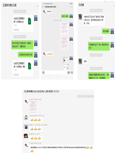 (上圖為2月5日,就公司復(fù)工申請事宜,槐蔭區(qū)工信局惠健副局長和槐蔭區(qū)玉清湖街道辦事處李偉偉副主任等領(lǐng)導(dǎo)蒞臨公司進(jìn)行現(xiàn)場考察驗(yàn)收)