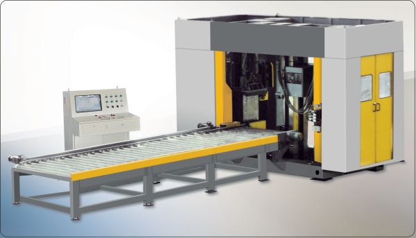 2、雙立柱/四立柱分別安裝在縱向和橫向的數(shù)控滑臺上,當(dāng)加工不同規(guī)格的H型鋼時只要輸入規(guī)格參數(shù),機床就可以數(shù)控自動調(diào)整好,并能銑削端面傾斜的H型鋼鎖口。